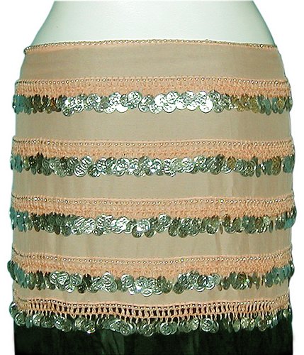 Pale Orange Rectangular Hip Scarf with Silver Coins